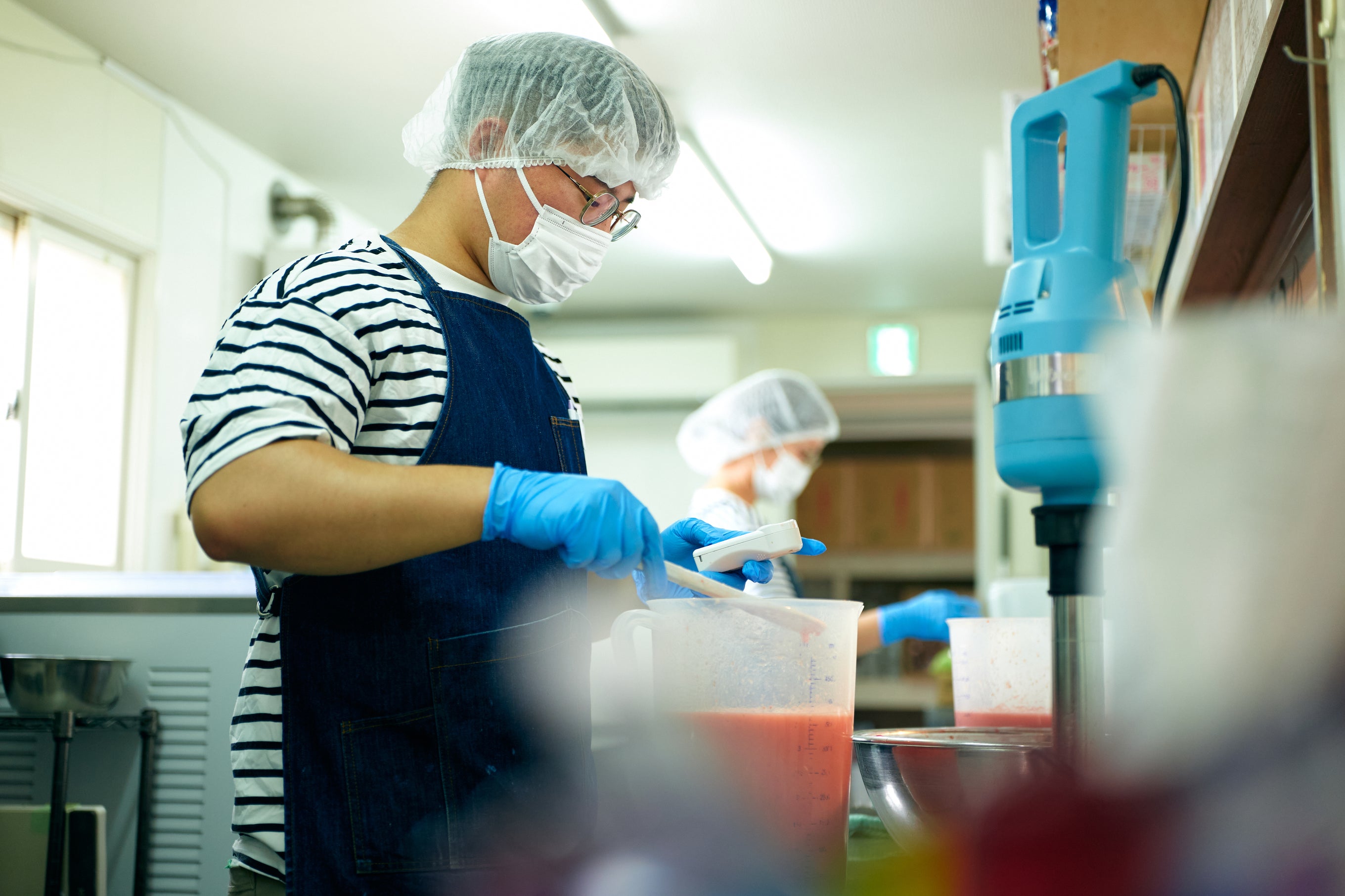 南高梅は梅のヘタを取り漬けるところから始め、ジェラートになるまでに1ヶ月程度かかります。
